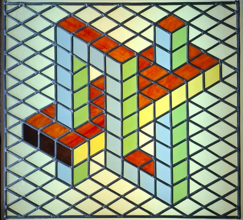 Je hebt een idee, een visie, een plan en je gaat er voor. Ontwerpschets maken, rapportschrijven, constructie berekenen, kosten berekenen, definitieve tekening maken enz., enz. Alles in eigen hand want het is jouw plan, jouw visie, jouw idee. Totdat er iemand komt met de mededeling dat je plan onmogelijk is om uit te voeren. Onbegrijpelijk dat ze jouw plan niet zien zitten, dat ze er niet in geloven. Nu moet je kiezen: ga je door met je plan of ga je het aanpassen. Het Glas-in-Lood op de afbeelding is mooi van vorm en mooi van kleur maar het is een (optische) illusie en kan nooit in 3D worden uitgevoerd. Een paar kleine aanpassingen en bijna het hele ontwerp blijft overeind staan en is prima te verwezenlijken.