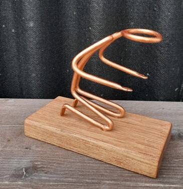 Deze draadsculptuur is gemaakt op een ondergrond van leer.